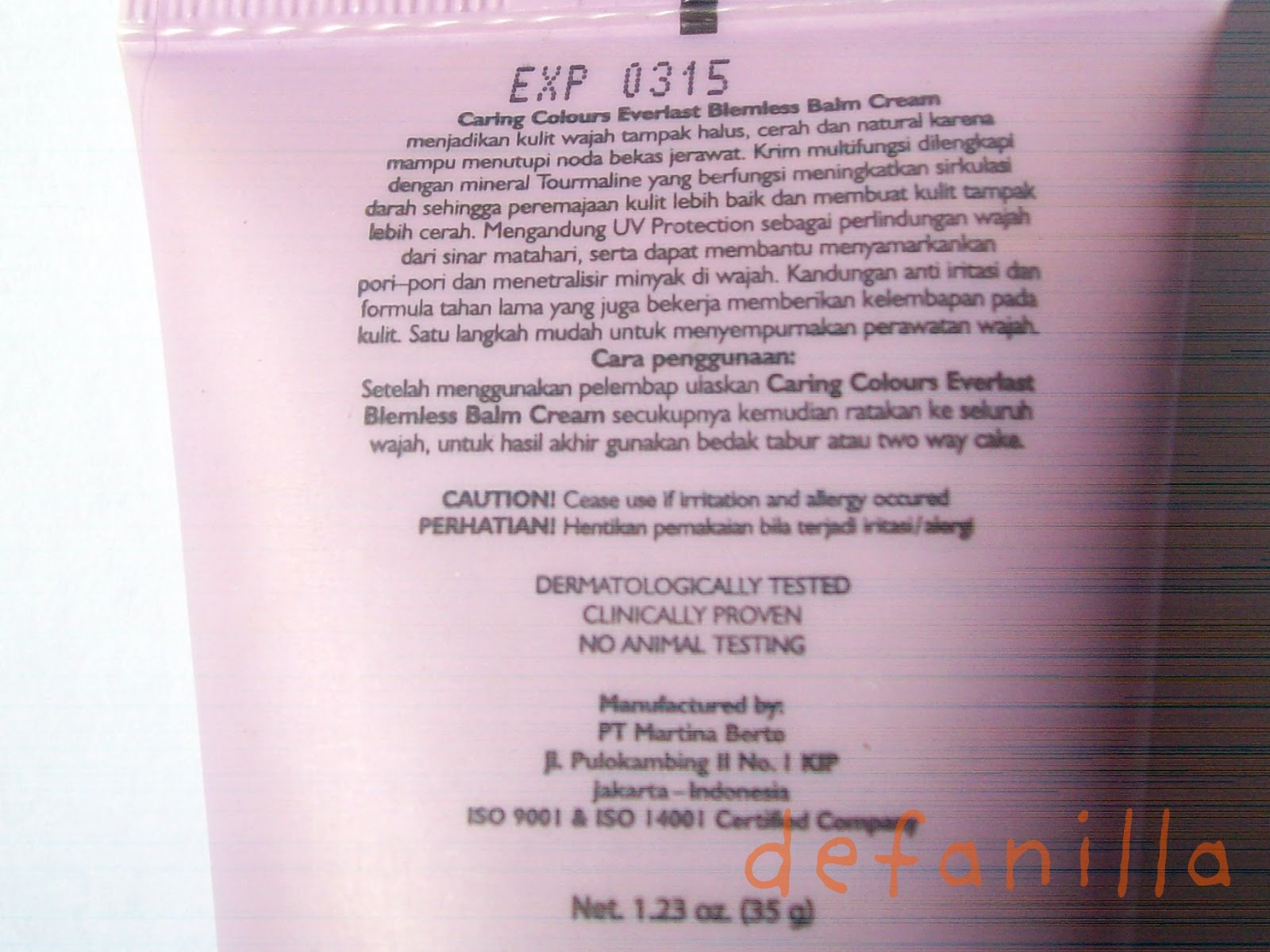 keterangan di bagian belakang tube nya