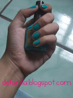 Sebelum mengaplikasikan kutek, aku pakein Nail Vita Base Coat terlebih dulu. Warna asli kutek sebenernya lebih ke hijau, tapi di foto keliatan biru (hadehh...)