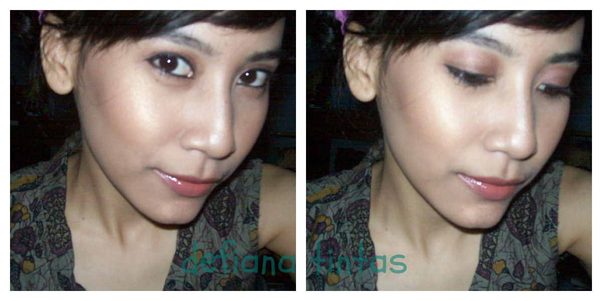 Aduuuhh.... saya pusiiiing.... awalnya pengen mbatikin muka, eh malah bikin FOTD --" Kalo foto di atas ini (dan foto-foto di bawah) lippennya udah saya timpa pake elf super shiny gloss in malt shake.