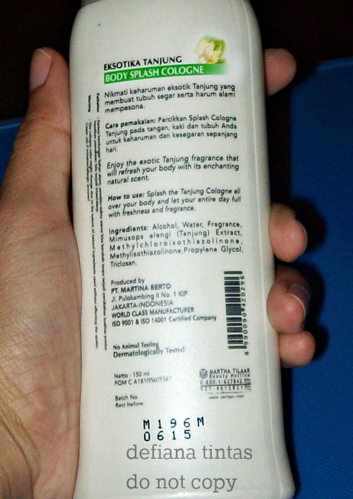 entah sudah berapa kali saya merepurchase body splash cologne eksotika tanjung ini. saya tak pernah bosan dengan wanginya yang eksotis. cologne ini bisa dipakai ke seluruh tubuh, dan wanginya tahan lama. cologne ini paling asik kalau dipindahin ke botol yang ada sprayernya, bisa semprot-semprot ke badan sepuas hati.