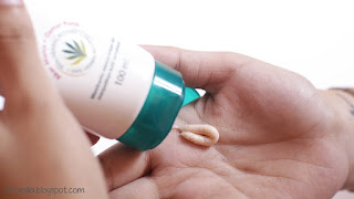 Kemasannya berupa tube berwarna putih susu, dengan tutup flip top berwarna hijau toska. Mirip-mirip lah sama kemasan facial washnya. Yang membedakan hanya warna tubenya. Jika produk ini ditaruh di tempat yang sama dengan facial washnya, yakin banget nggak akan salah ambil kecuali kalau pas mati lampu.