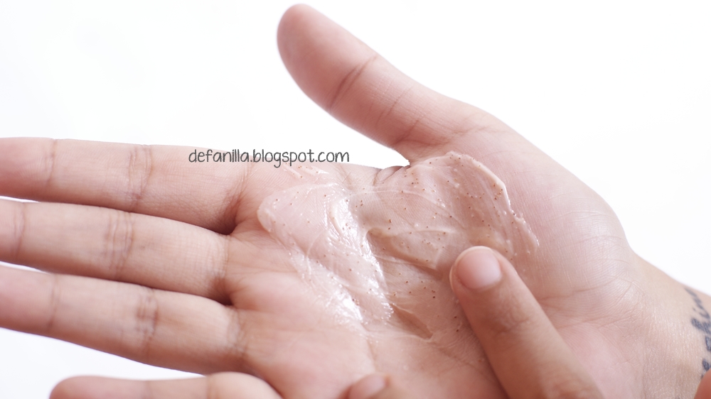 Teksturnya kental dan berbentuk seperti cream namun sedikit lebih padat. Meski begitu, produk ini tetap dapat diaplikasikan di wajah dengan mudah. Tidak ada rasa seret-seretnya sama sekali. Di dalamnya mengandung butiran scrub yang cukup banyak, rasanya mantap lah saat melakukan ritual pembersihan wajah.