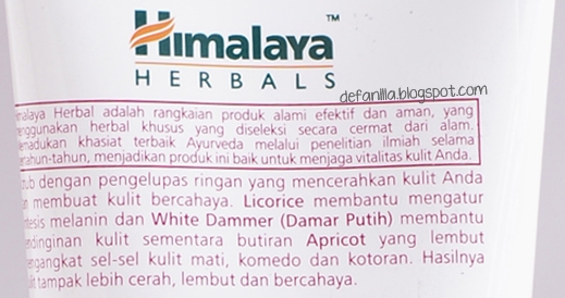 Produk ini masih menggunakan licorice (akar manis) dan damar putih sebagai bahan aktifnya. Untuk butiran scrubnya, diperoleh dari biji buah apricot. Tapi saya kurang yakin apakah semua butiran scrubnya berasal dari biji buah apricot.